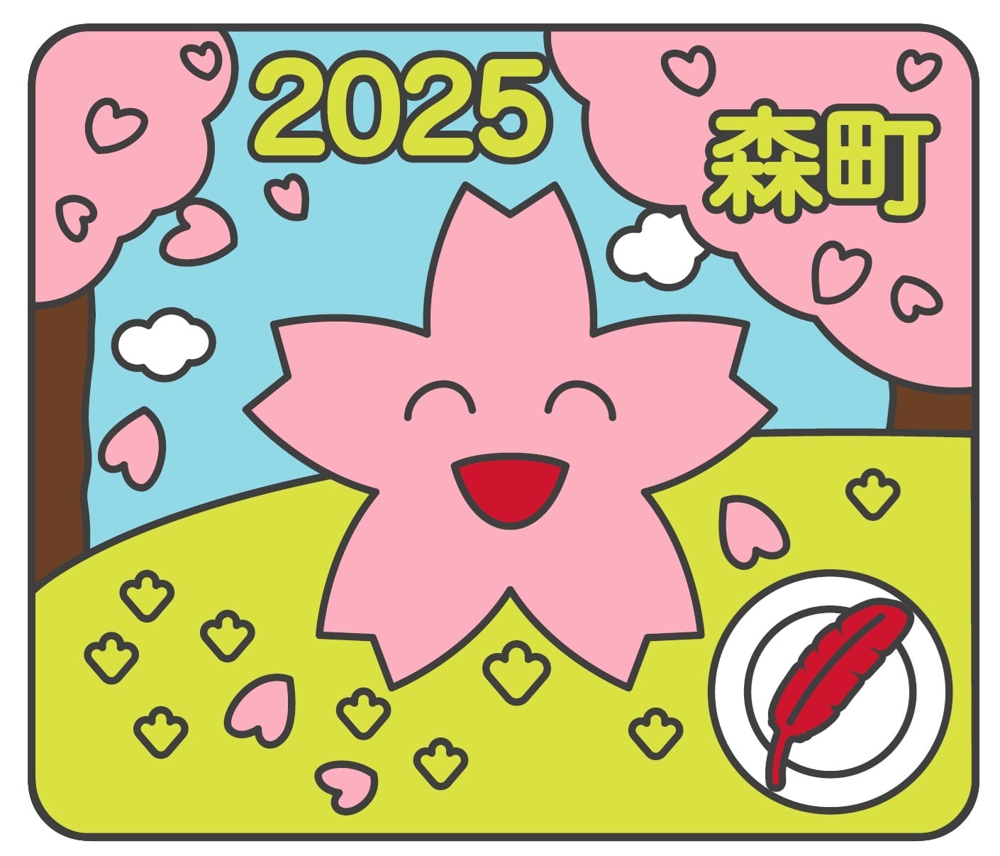 2025年のピンバッジデザインは森町の小学生以下の子どもたちを対象に公募を行い、森小学校の児童が描いた「さくらこ」のイラストを採用しました。