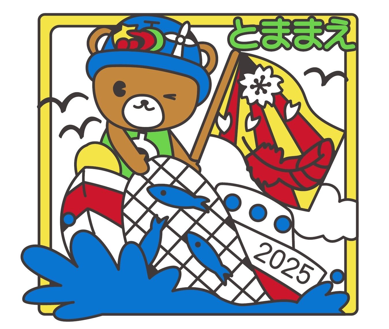 苫前町のイメージキャラクター「くまだとまお」が春を告げる魚であるニシン漁をしているピンバッジを作製しました。