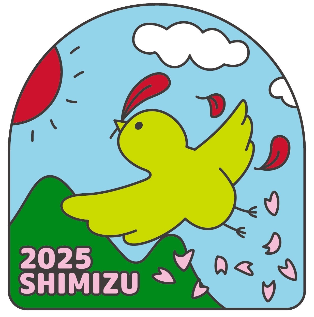 町の鳥うぐいすが大空に向かって羽ばたく様子をデザインしました。